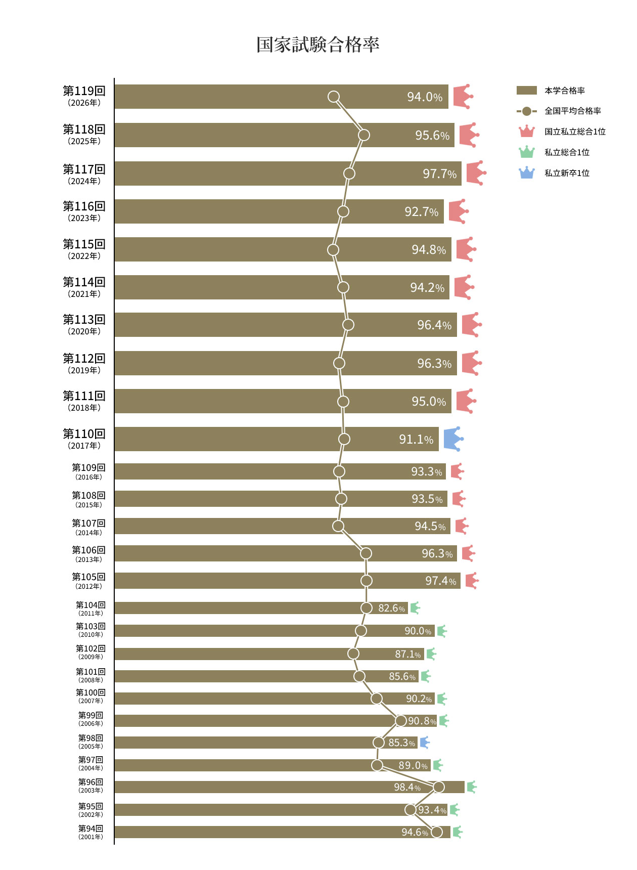 第119回歯科医師国家試験(2026年実施)での東京歯科大学の合格率は、 国公私立29歯科大学・歯学部中総合成績において全国1位となりました。